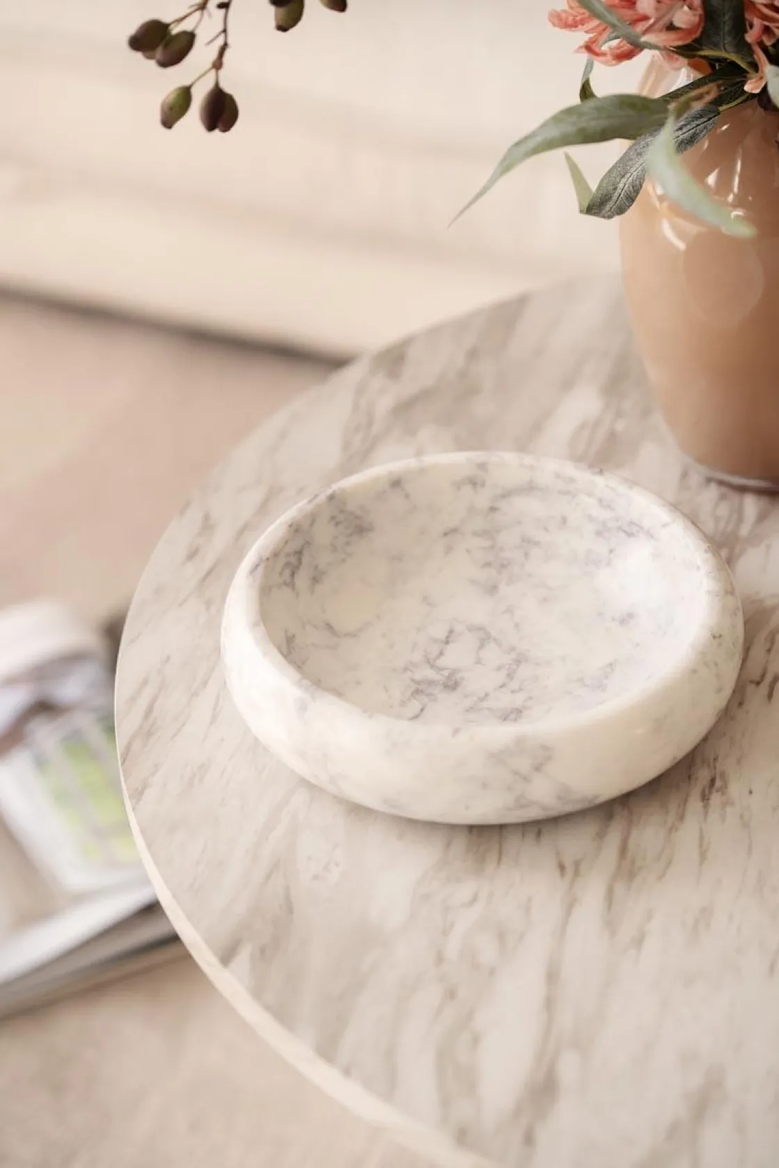 Småting har lett for å forsvinne, men denne marmorerte skålen gir dem et trygt og pent sted å være. Formen er rund og myk, med fin tyngde og solid bunn. Skålen er laget i marmor og har en jevn overflate som passer like godt til nøkkelknippe i gangen som til små smykker på nattbordet. Fargespillet i marmoreringen gjør at ingen er helt like.