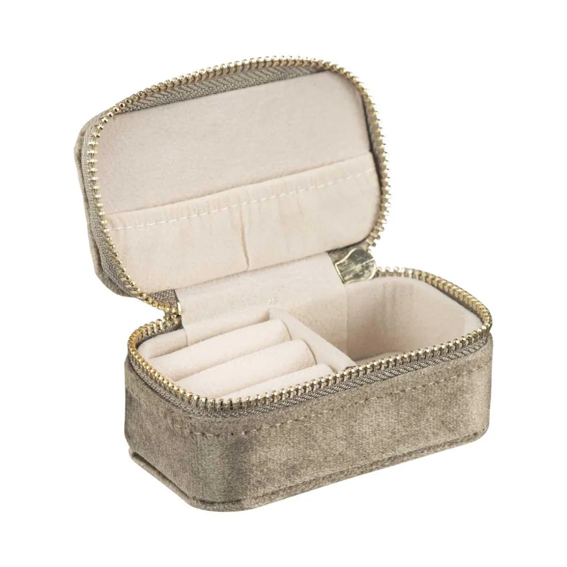 Et lite og praktisk smykkeskrin med glidelås som holder alt trygt på plass, enten det ligger i nattbordskuffen eller blir med i veska. Skrinet har plass til flere ringer, små øredobber og kanskje et kjede eller to.