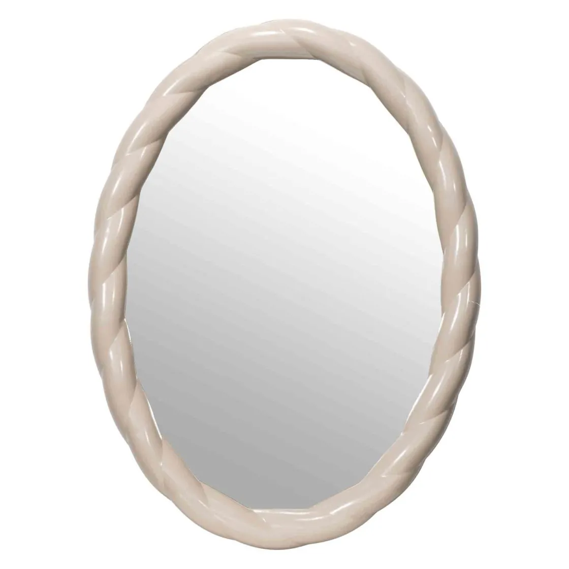 Ovalt speil med ramme i flettet design som gir et mykt og elegant uttrykk. Speilets utforming gjør det enkelt å plassere i ulike interiørstiler. Perfekt til gangen eller soverommet, hvor det tilfører både funksjon og dekor. Kombiner med små lyslykter eller et konsollbord for å skape en hyggelig krok.