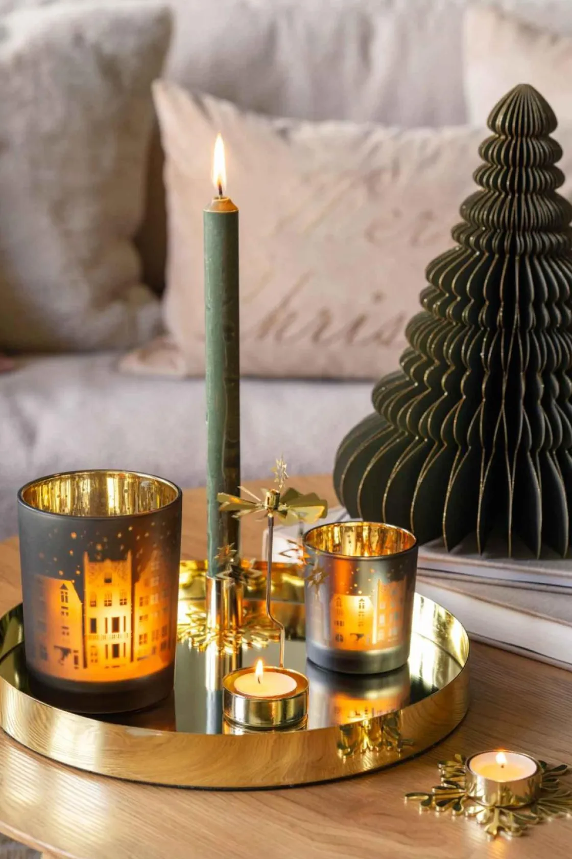 En telysholder i gull med vakre detaljer som kan minne om blomsterrøtter. Dekorer på et lysfat med andre lykter og figurer eller la den spre røttene sine over middagsbordet i julen.