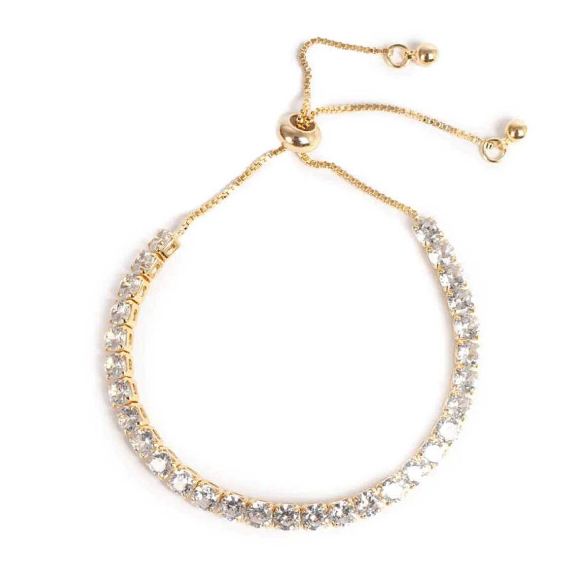 Et kjempekult armbånd, gullbelagt stål med krystall-steiner, som er justerbart med en dekorativ lenke. Et spennende blikkfang rundt håndleddet.