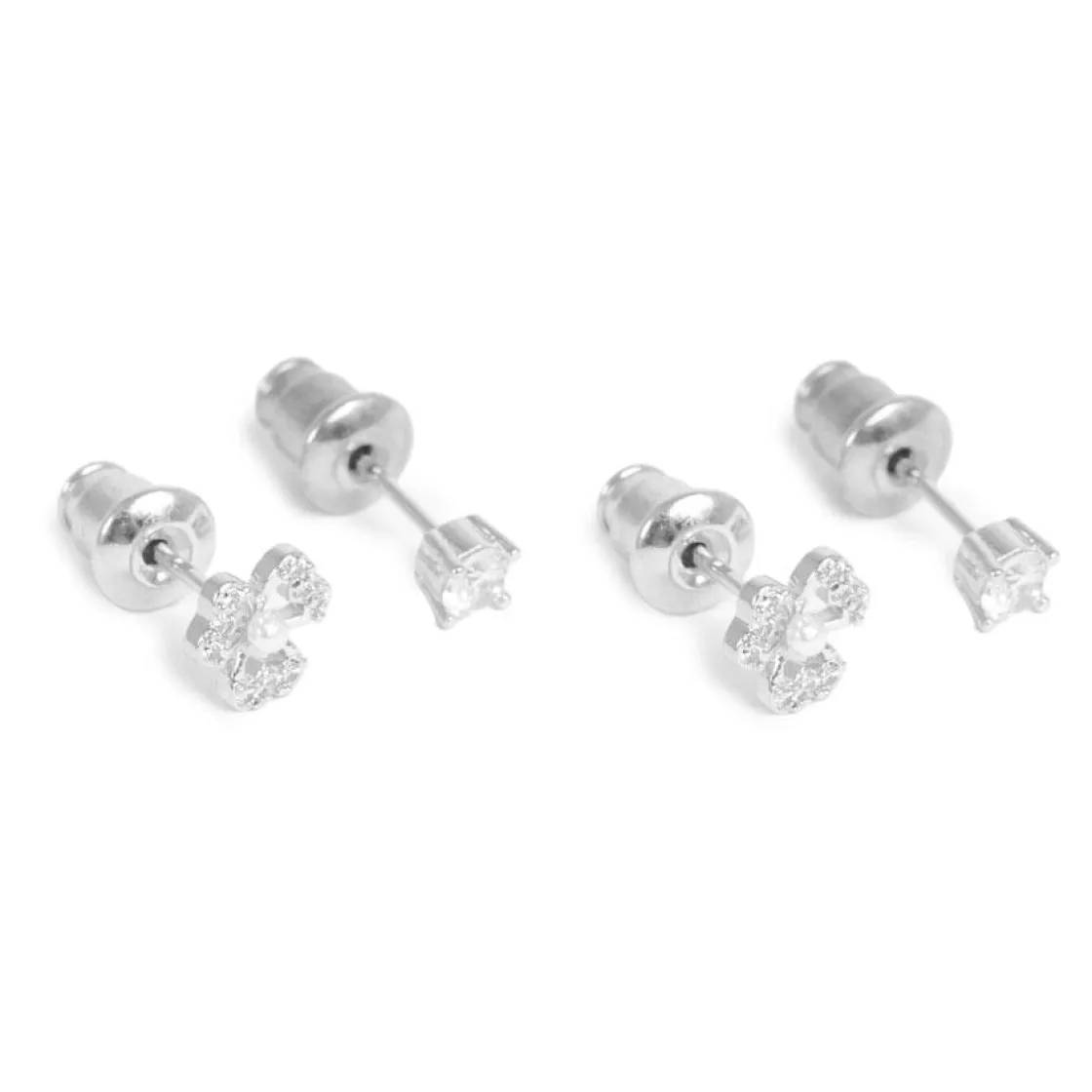To par ørepynt laget av enkle zirconer, sølvbelagt.